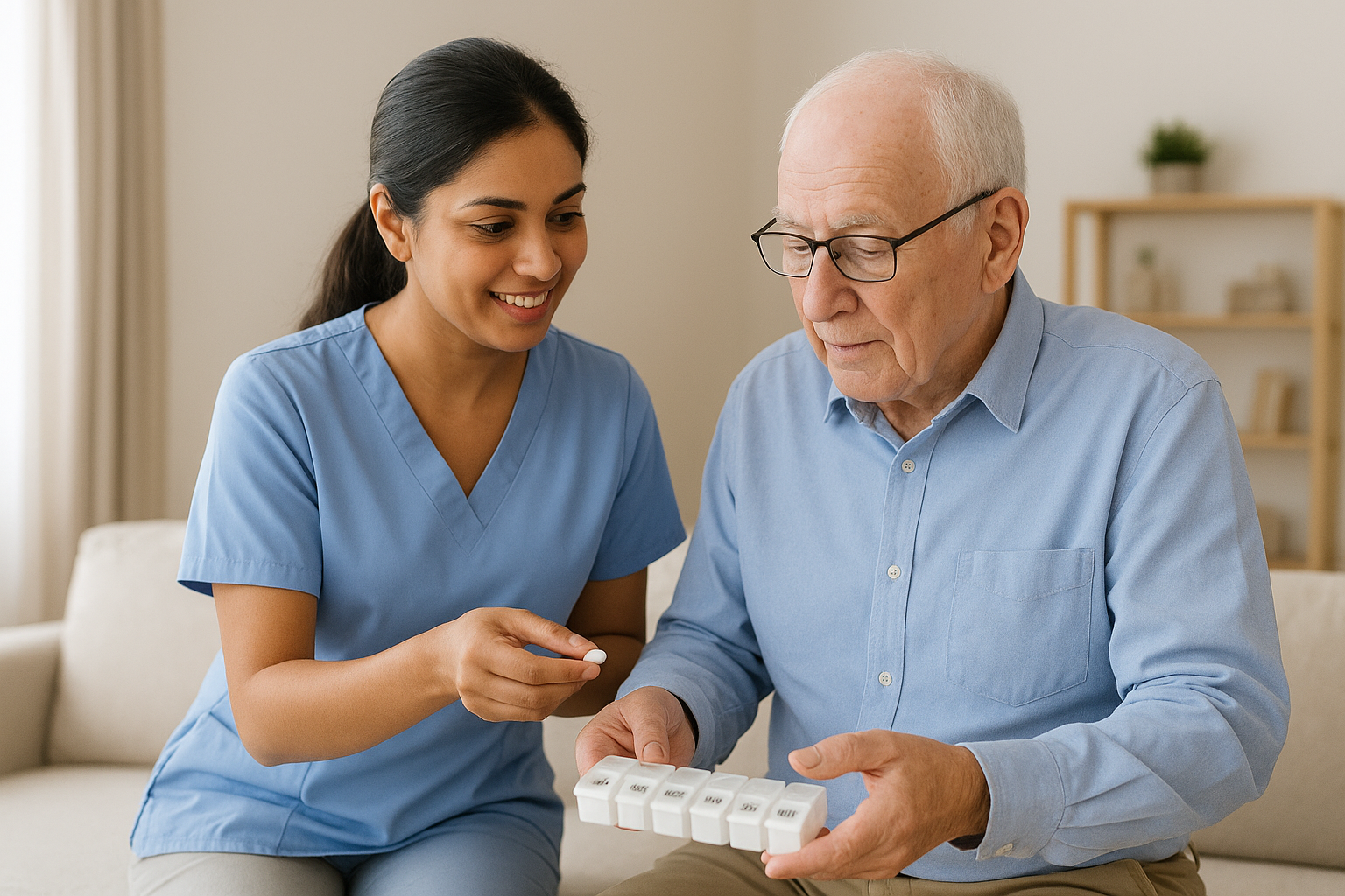 Many hospital discharges come with new medications, dosage changes, or detailed schedules. Missing doses or taking medicines incorrectly can lead to serious problems. Elderra’s trained caregivers: